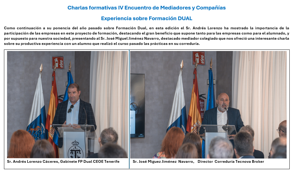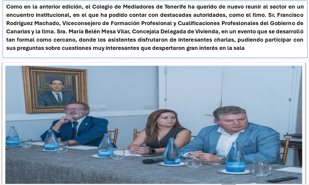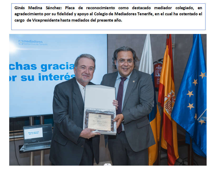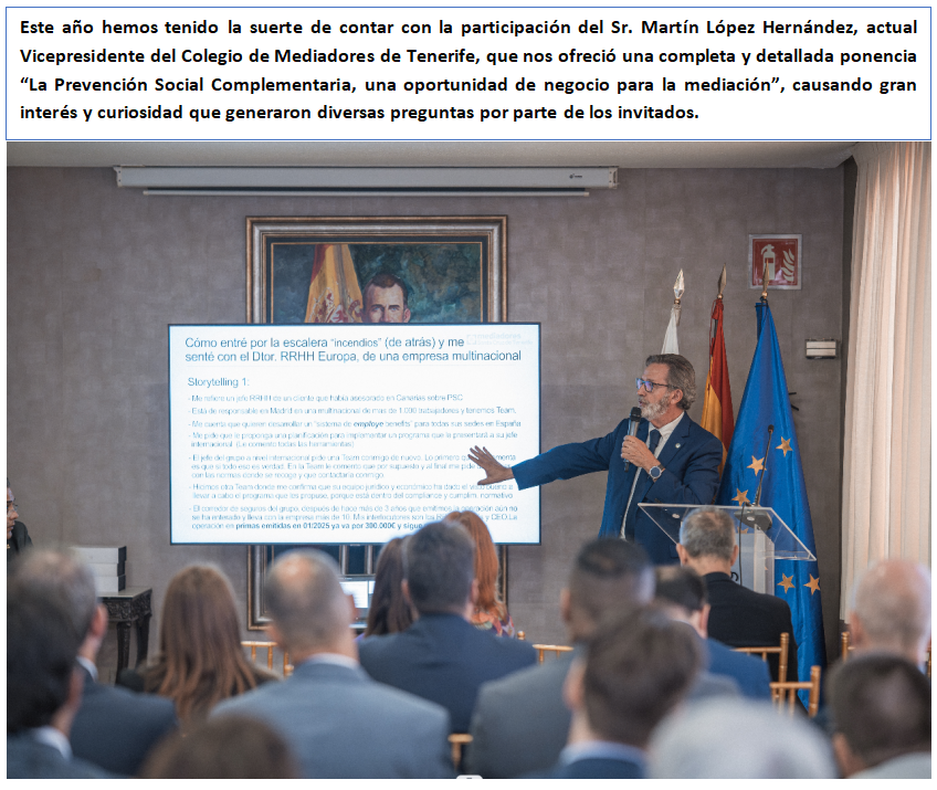 Haber podido contar con el Sr. Juan Antonio López de Vergara, Presidente de la prestigiosa entidad aseguradora Mutua Tinerfeña, es algo que también nos ha llenado de orgullo y satisfacción en este III Encuentro de la Mediación.