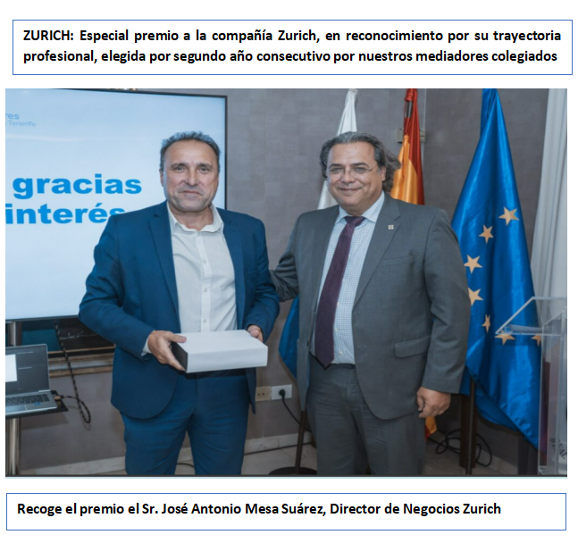 Zurich Seguros seguirá colaborando activamente con el Colegio, a través de la organización de jornadas formativas y la participación en diferentes actos dirigidos a los Mediadores de Seguros de S/C de Tenerife...
